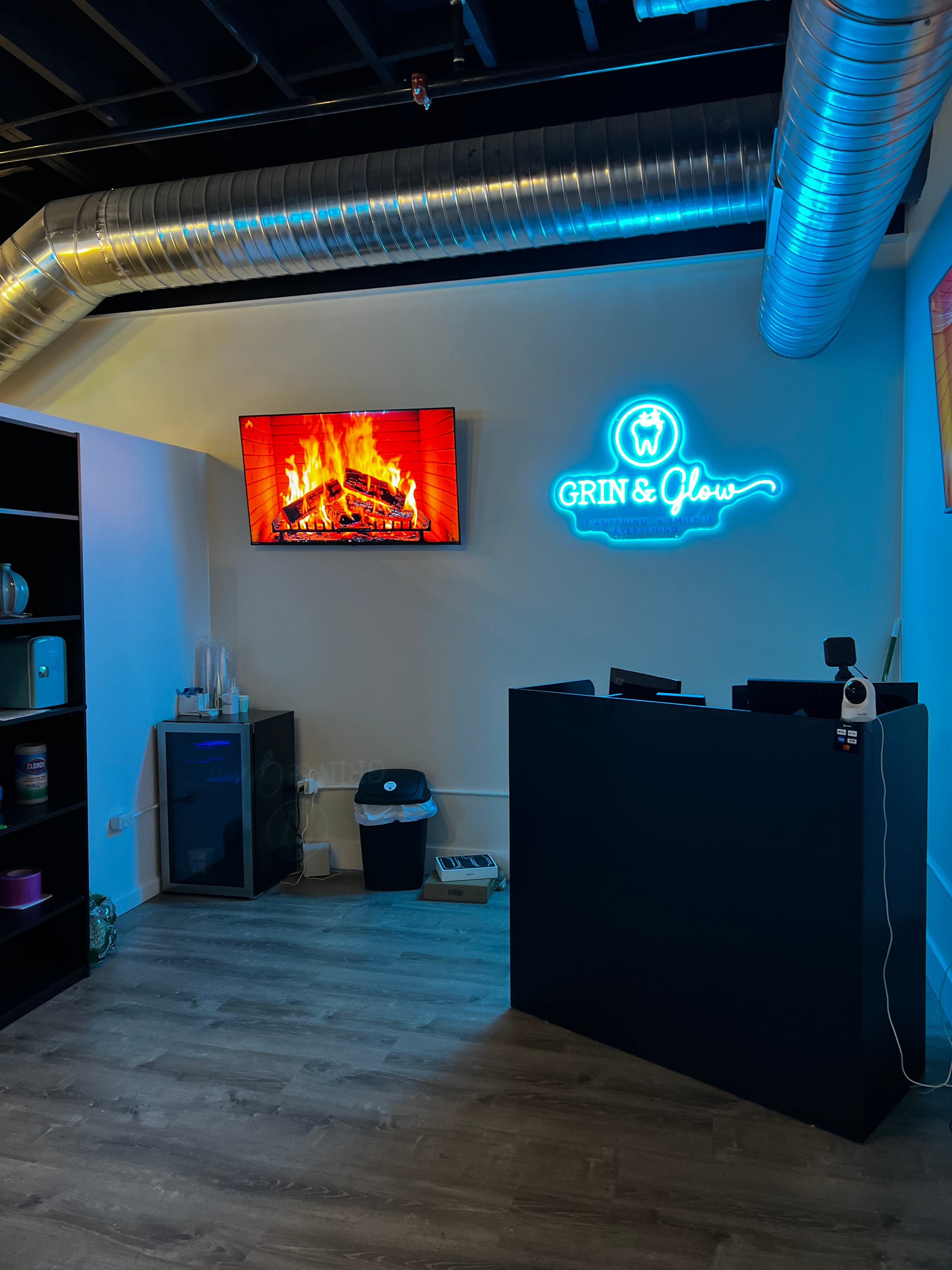 At Grin & Glow®, we believe a whitening session should feel like more than just a treatment — it should feel like a luxury escape. From the moment you arrive, you’re welcomed into a clean, serene, and spa-inspired environment designed to help you relax and unwind. Every detail is personalized, from refreshments to comfort touches, so your experience feels just as special as your results. Our team combines professional expertise with genuine care to ensure you leave not only with a brighter smile, but also with a renewed sense of confidence and glow.